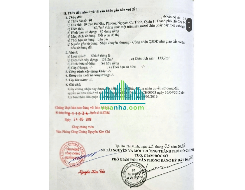 Bán Nhà Mặt Tiền 19 Cao Bá Nhạ – Quận 1 – Khuôn Đất Lớn, Phù Hợp Xây Mới – Giá 95 Tỷ
